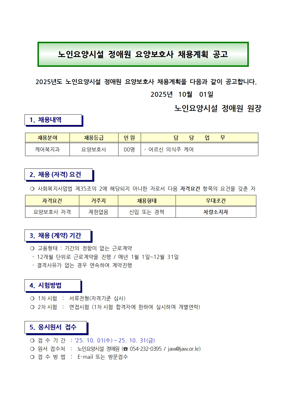 2025년 10월 노인요양시설 정애원 요양보호사 채용공고 정애원 0 23 10.01 18:48 2025.10.01 18:57 .요양보호사 직원채용공고문..hwp (124.5K) + 0