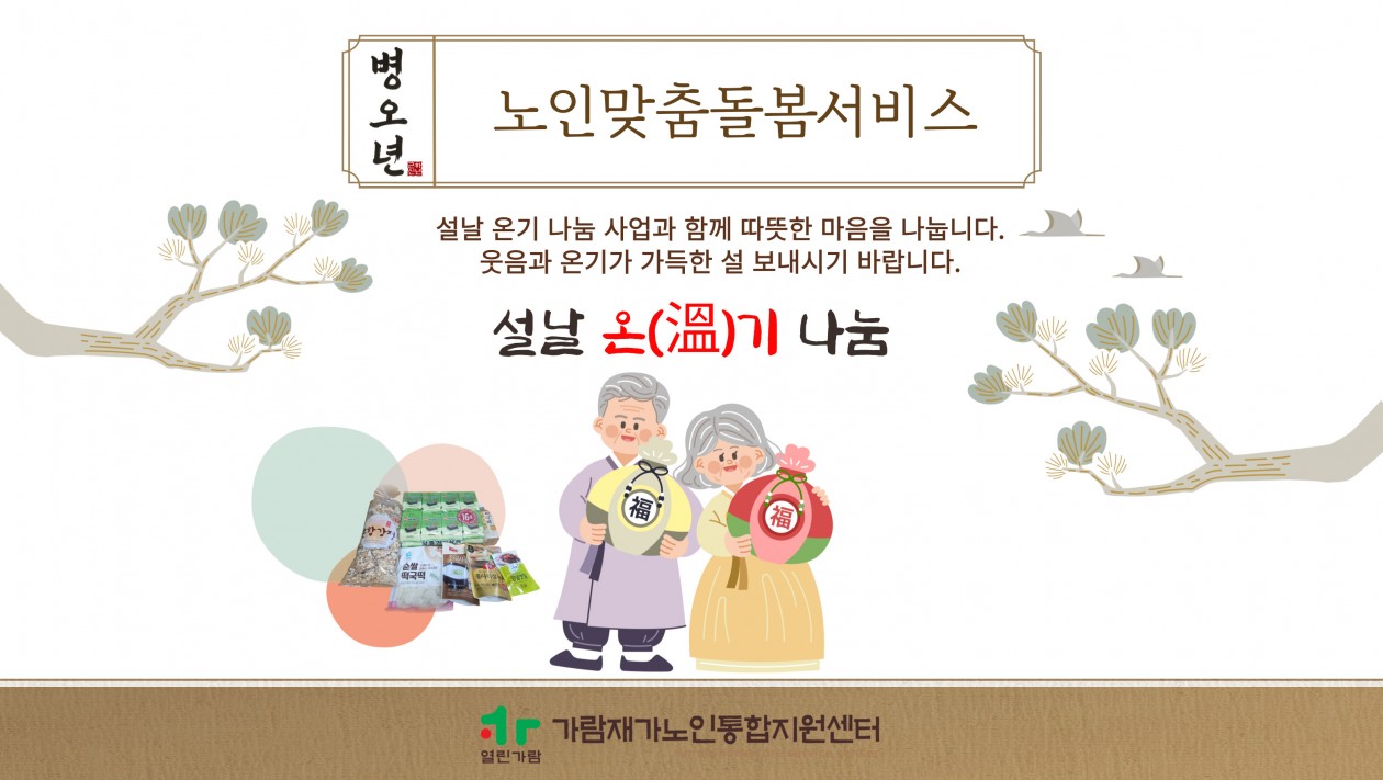 설날 온기나눔사업과 함께 따뜻한 마음을 나누는 시간을 가졌습니다. 어르신들께서 웃음과 온기가 가득한 설 명절을 보내시길 바라며,