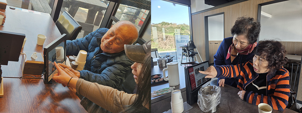 가람재가노인통합지원센터 우양재단 키오스크 지원사업 '맛있는 디지털 밥상' 가람재가노인통합지원센터 노인복지사업 0 6 2025.12.31 18:19 가람재가노인통합지원센터 우양재단 키오스크 지원사업 '맛있는 디지털 밥상'11월 한 달 동안 총 4회에 걸쳐 어르신들과 함께 키오스크 체험을 해보았습니다.직접 키오스크로 주문해보며 맛있는 점심과 차를 나누었습니다."직접 해보면 어렵지 않은데, 그 '처음'을 하는 게 무섭다."는 솔직한 마음도 들려주셨습니다.이번 프로그램을 통해 두려움은 줄이고, 자신감은 쌓이는 변화를 확인할 수 있었습니다.어르신들의 도전을 언제나 응원합니다!