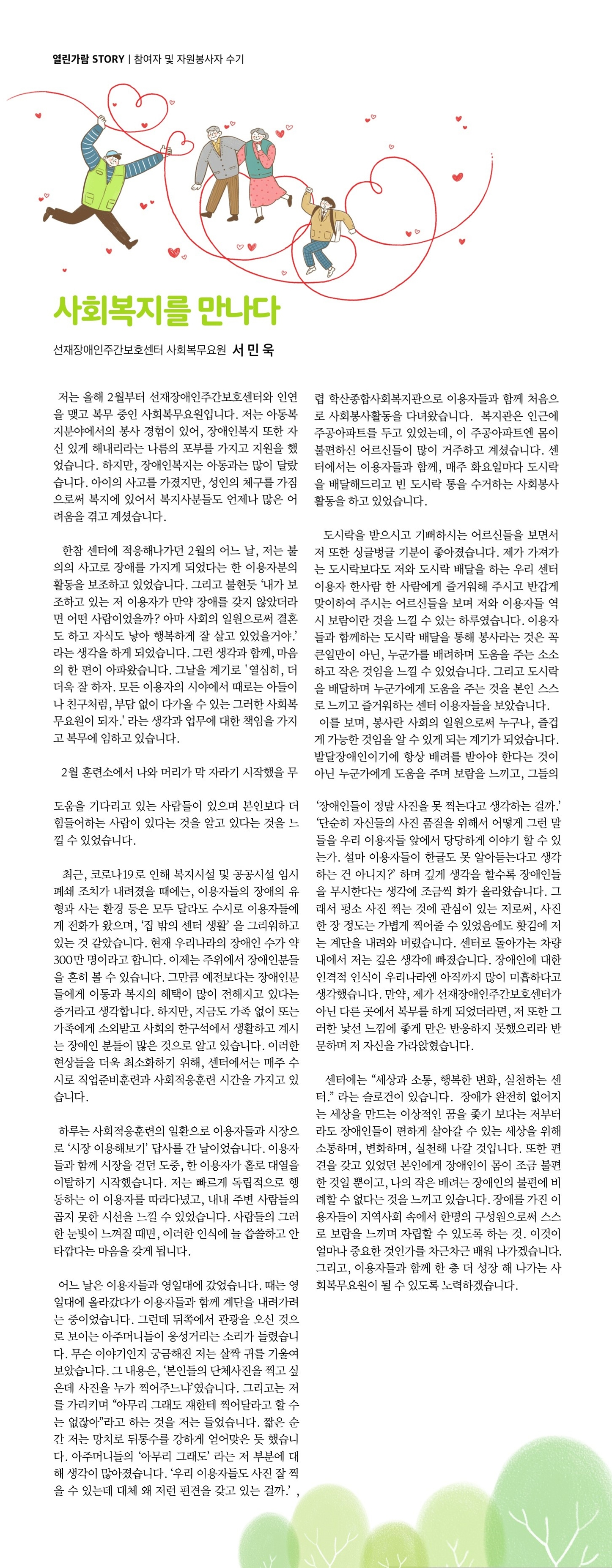 참여자 및 자원봉사자 수기 ㅣ 사회복지를 만나다