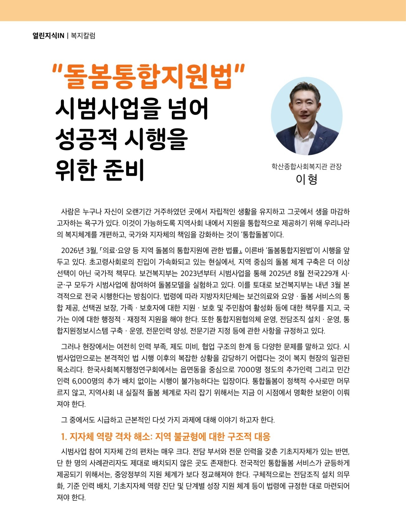 복지칼럼 | 지역사회통합돌봄, '장밋빛 미래'를 위한 과제