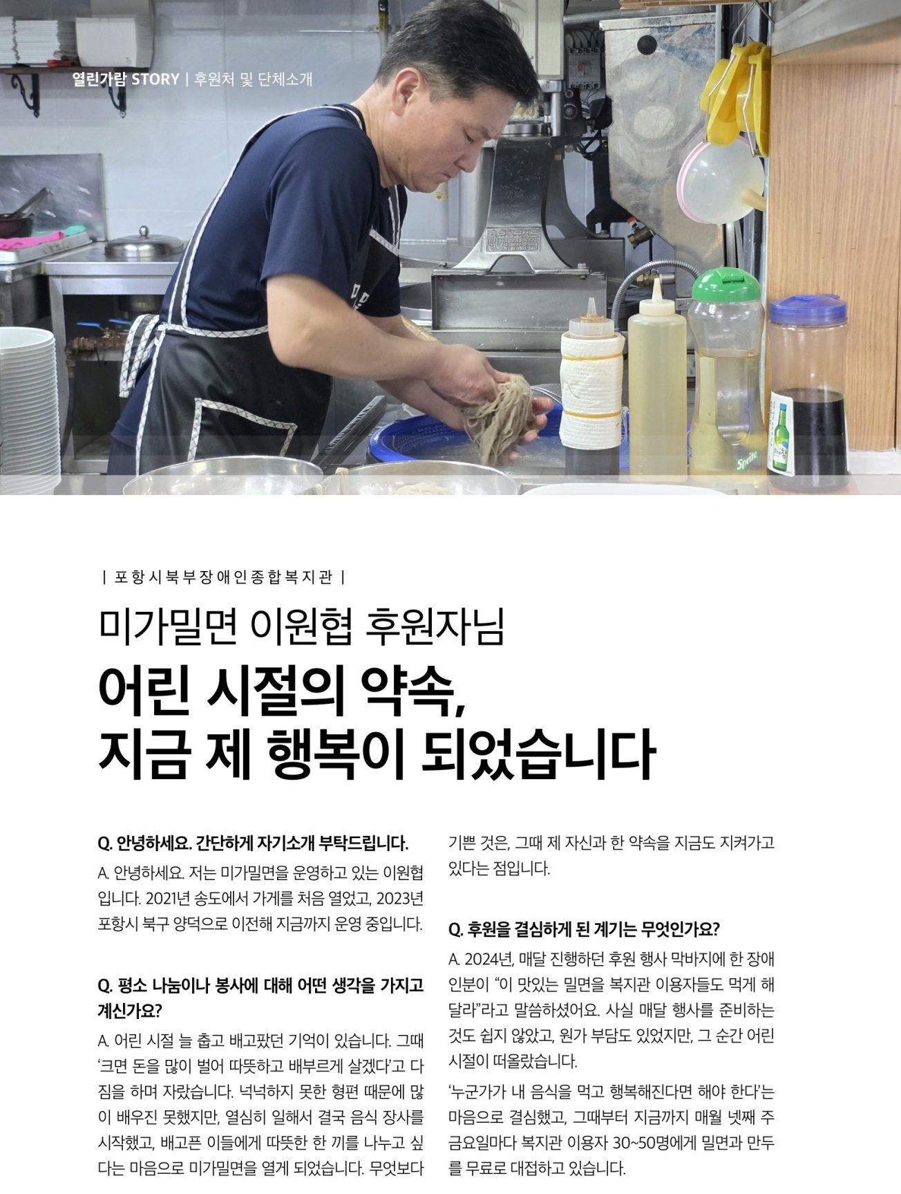 후원처 및 단체소개 | 미가밀면 이원협 후원자님