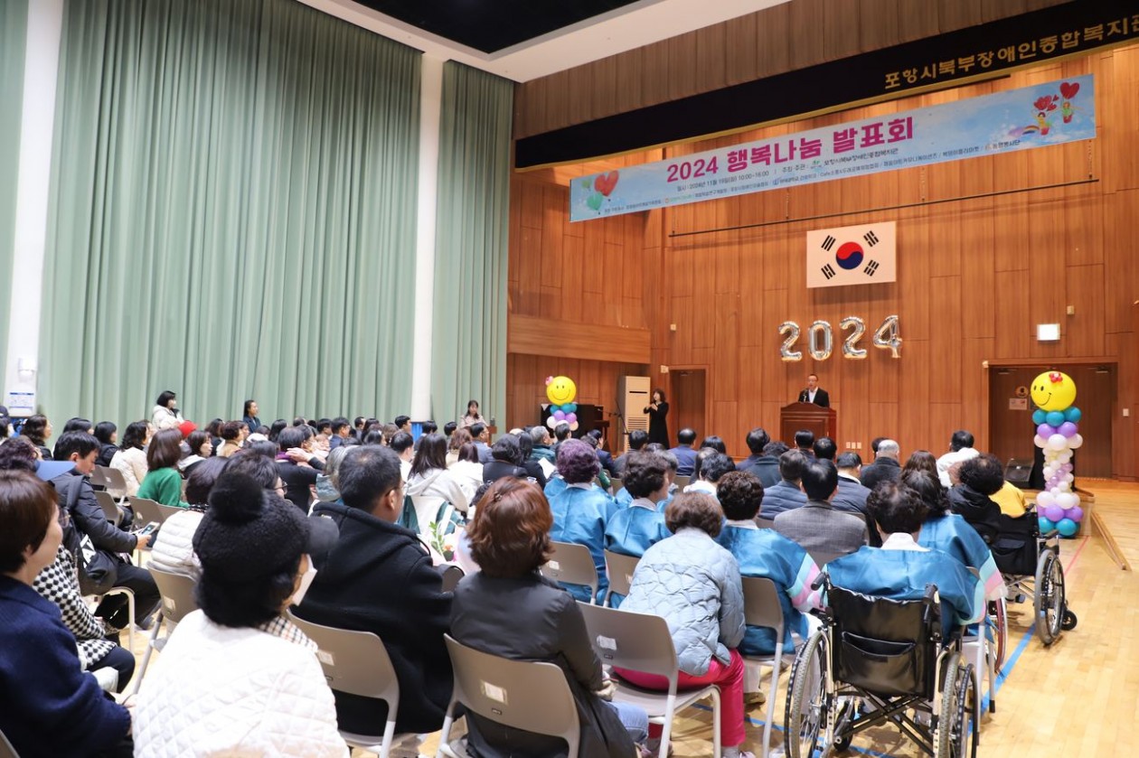 2024년 행복나눔 발표회 실시 포항북부장애인복지관 장애인복지사업 0 615 01.14 19:11 2024년 행복나눔 발표회 실시포항 지역 내 장애인시설, 단체와 복지관 이용 장애인 450명이 한 해 동안 준비해왔던 예술작품과 공연을 함께 공유하고, 다양한 체험, 먹거리부스를 체험하며 축제의 장을 만들었습니다.