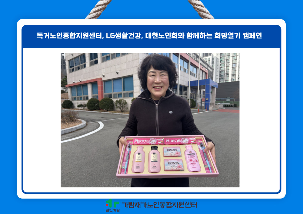 따뜻한 나눔을 실천해 주신 독거노인종합지원센터, LG생활건강, 대한노인회에 깊은 감사를 드립니다.
