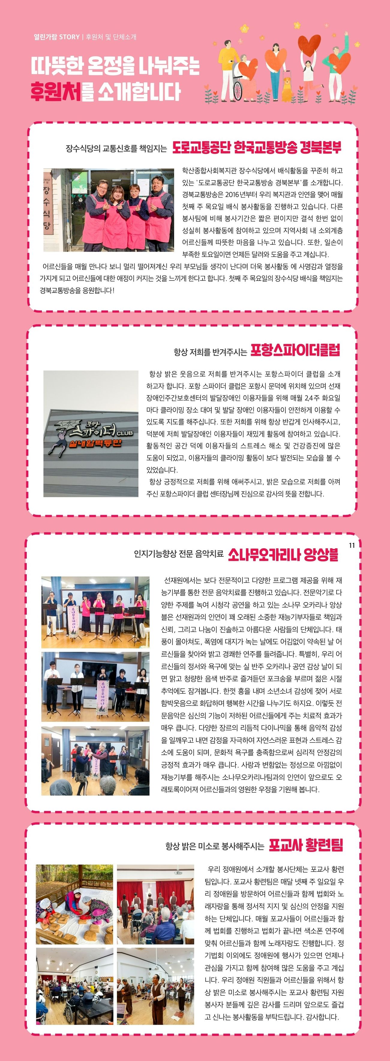 후원처 소개ㅣ도로교통공단 한국교통방송 경북본부, 포항스파이더클럽, 소나무오카리나 앙상블, 포교사 황련팀