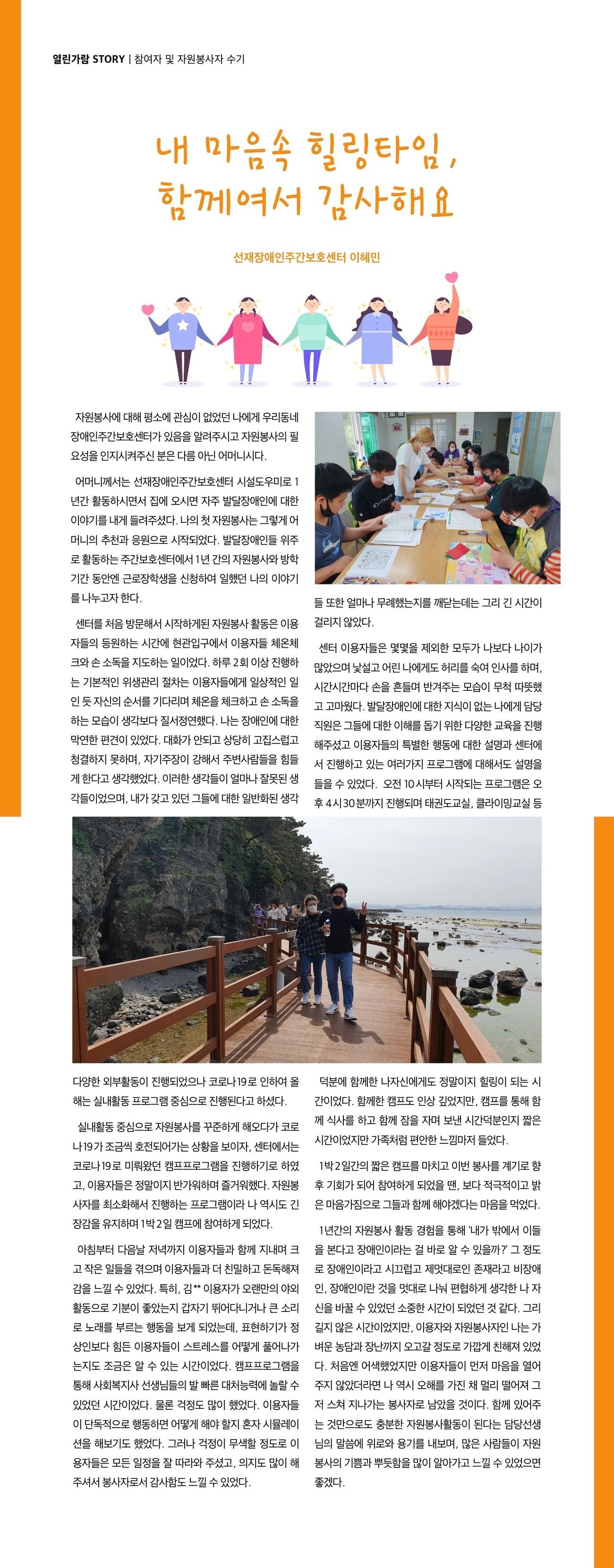 자원봉사자수기 | 내 마음속 힐링타임, 함께여서 감사해요